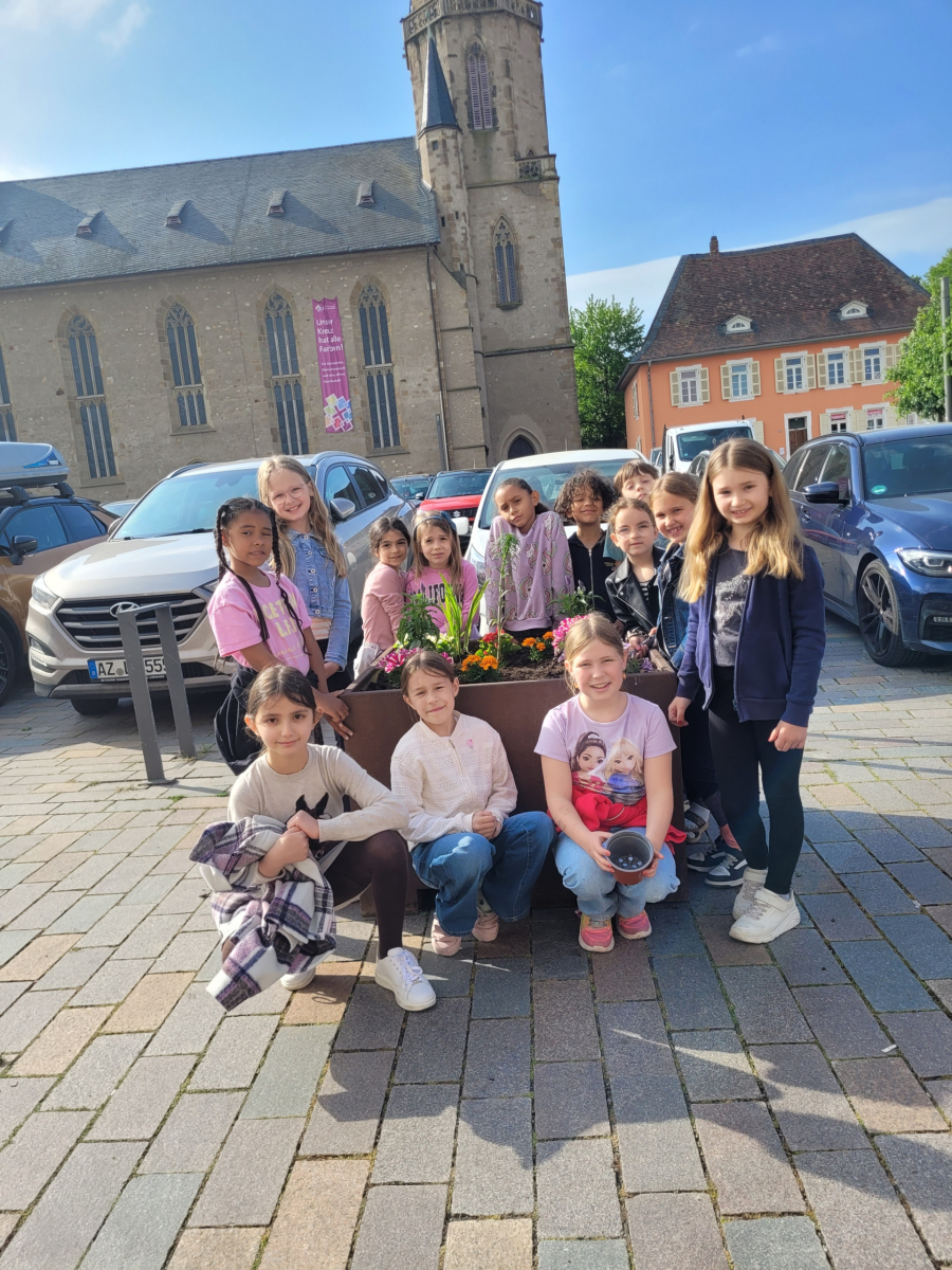Alzey blüht – Die Klasse 2a der St. Marien -Schule verschönert die Innenstadt