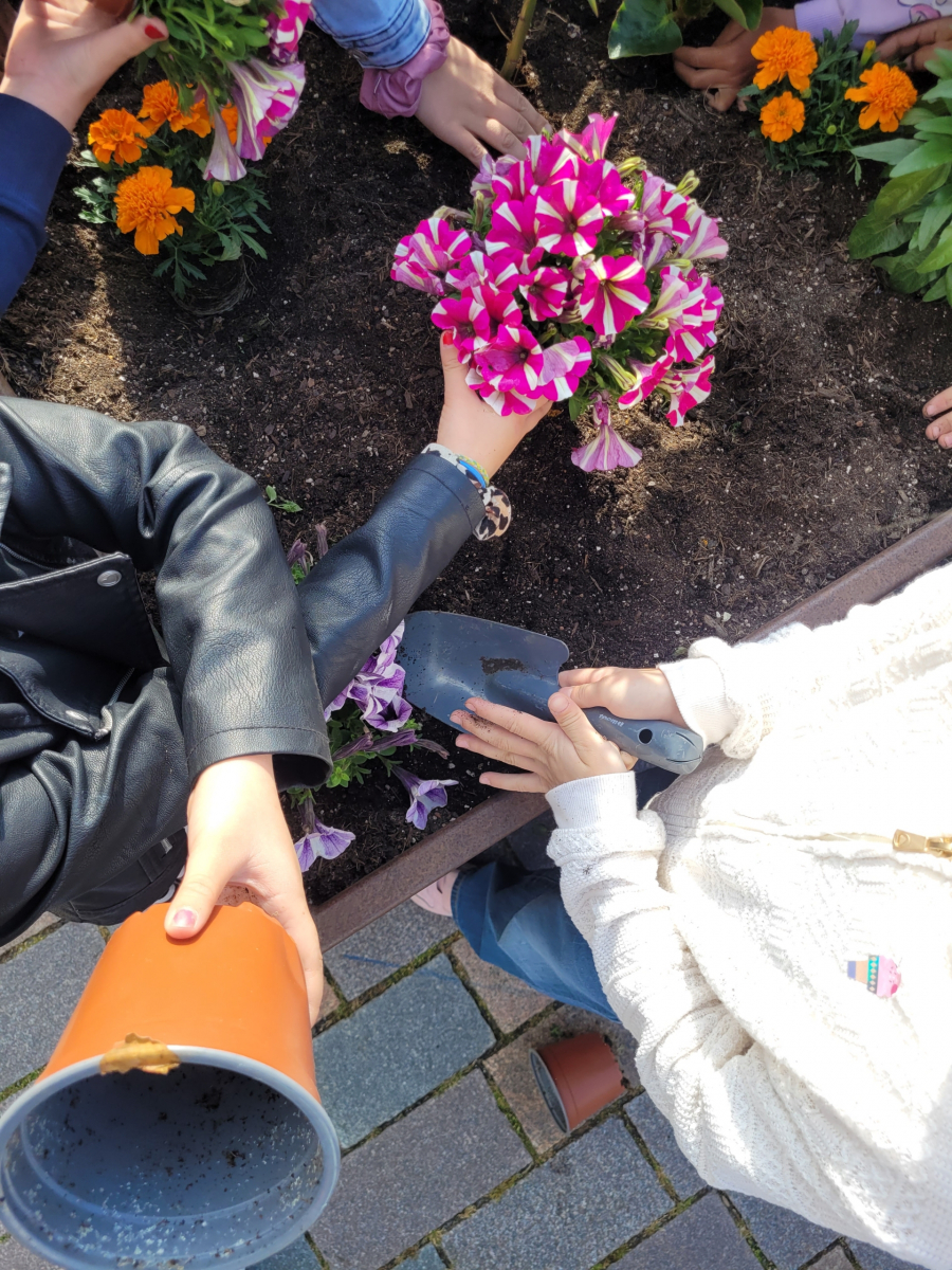 Alzey blüht – Die Klasse 2a der St. Marien -Schule verschönert die Innenstadt