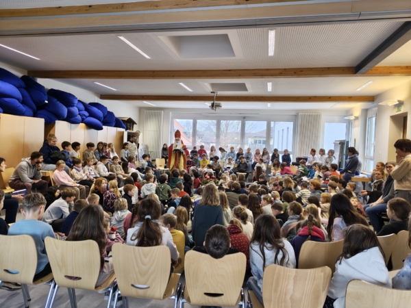 Gemeinsam mit ihren Lehrerinnen und ihrem Lehrer sangen die Kinder der St. Marien-Schule ein Nikolauslied, als es klopfte und der beliebte Heilige mit seinem Helfer eintrat. Er sprach mit den Kindern, ermutigte sie, offene Augen und mitfühlende Herzen für Menschen in Not zu haben und dankte ihnen für ihre Gaben. 280,00 Euro hatten die Jungen und Mädchen für erkrankte Kinder gespendet. Auch der Nikolaus war nicht mit leeren Händen gekommen. Er schenkte jedem Kind einen Schokoladennikolaus.
