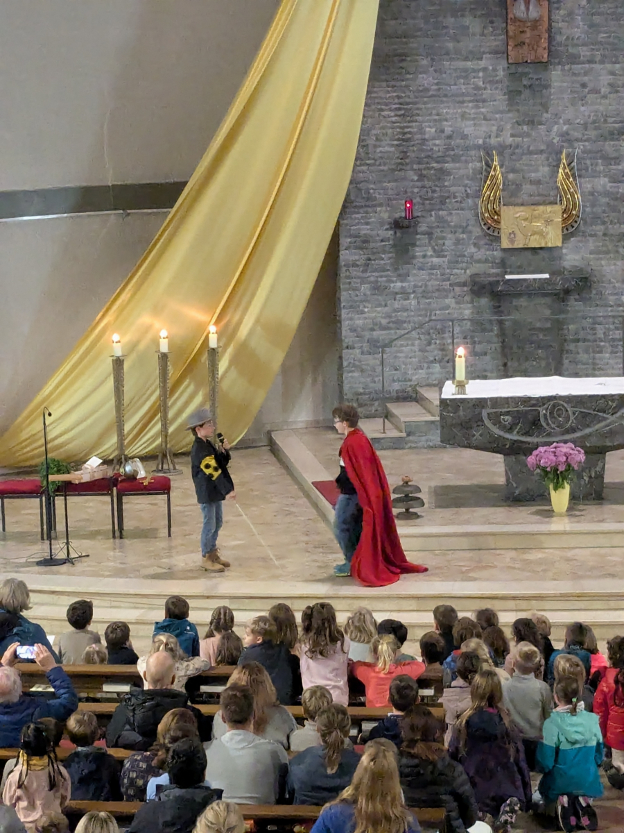 Diese Frage stellte sich während des Theaterstücks, das Kinder der Theater-AG der St. Marien-Schule im Sankt Martinsgottesdienst am 11.11. aufführten.